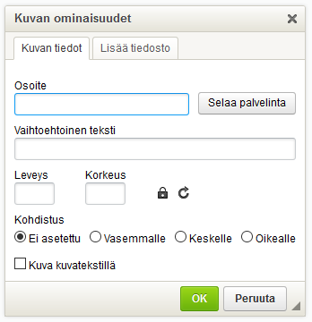 - Sivulle aukeaa Kuvan ominaisuudet -alue.