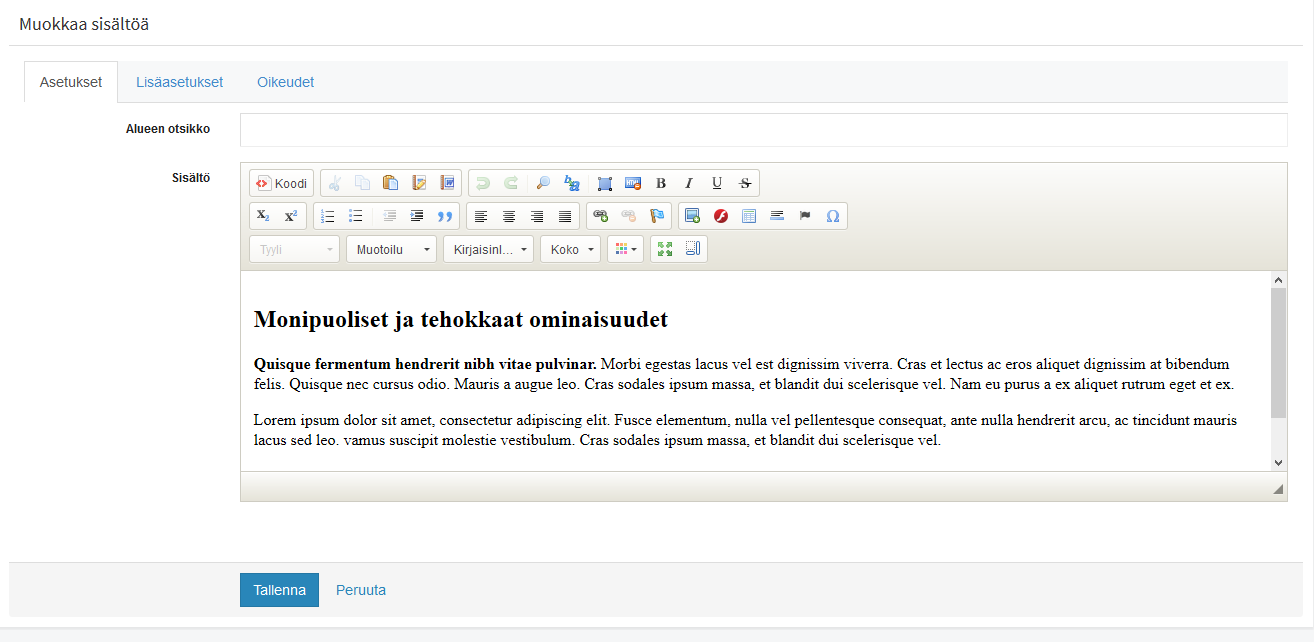 - Tallenna muutokset ennen poistumistasi sisältöeditorista.